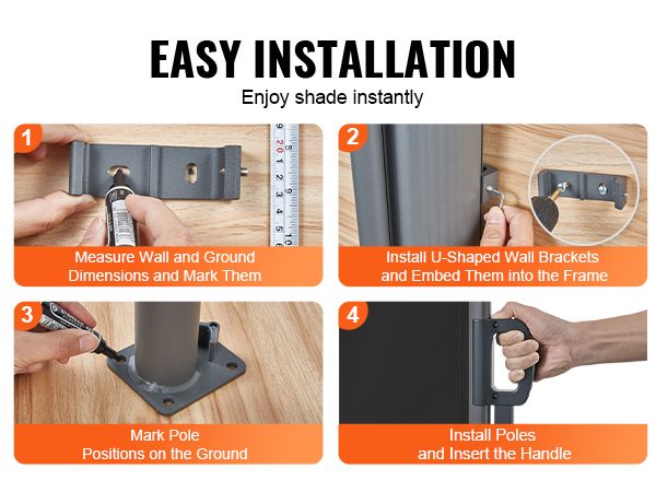 No more complicated installation steps!Our retractable screen is designed with user convenience in mind. Acomplete set of installation accessories and clear instructionsmake assembly a breeze, requiring no professional skills. Quicklycreate a comfortable outdoor space!
