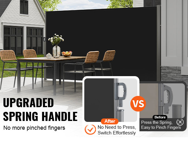 The outdoor privacy screen features aneffortless retractable handle with a spring mechanism, ensuringsmooth and easy operation every time you expand or retract it. Noextra effort is required – just a gentle pull, and you can enjoyinstant shade.